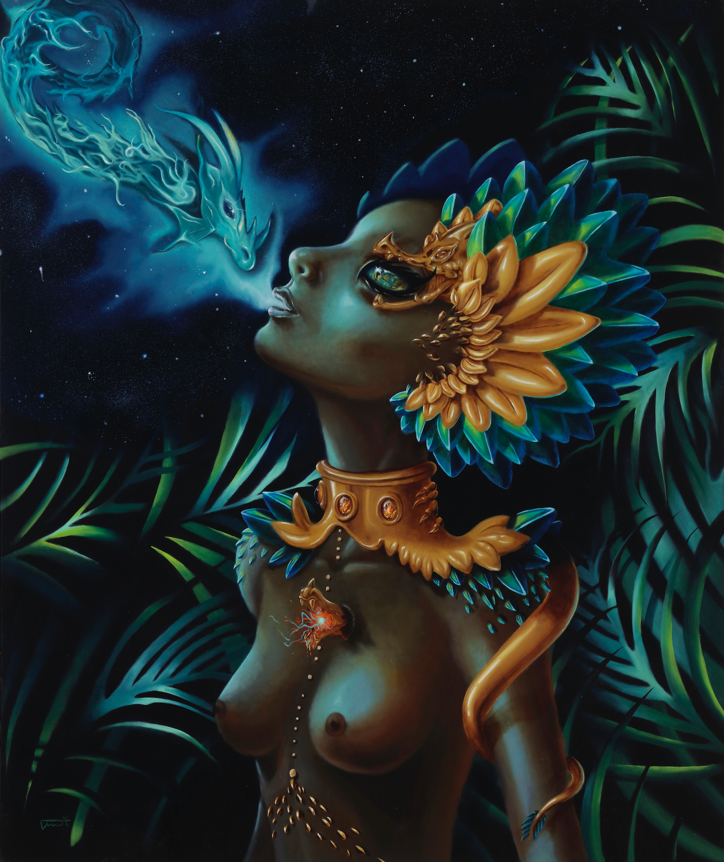 This is the space where you’ll find all of her works of art—or as she likes to call them, her creations. This page is dedicated to showcasing Tatum’s visual work: her full collection of paintings, past and present. Here, you can explore the pieces she has brought to life over time and read the multidimensional stories told through color, form, and essence. Take your time to browse, and immerse yourself in the evolving universe of Tatum Careyes.